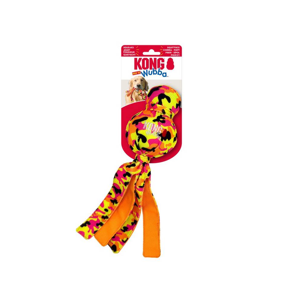 KONG Wubba on vastupidav ja lõbus koeramänguasi, mis sobib ideaalselt viskamiseks, püüdmiseks ja raputamiseks. Mänguasja sees olev pall ning pikad sabad muudavad selle eriti kaasahaaravaks ning lihtsaks haarata.