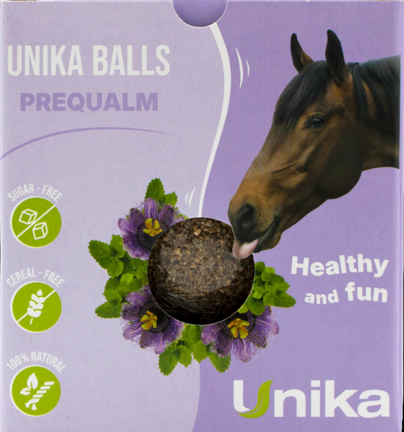 Unika Balls – Prequalm: sisaldab magneesiumi, kannatuslille ja sidrunmelissi ning on mõeldud hobustele, kes vajavad rohkem sisemist rahu ja paremat emotsioonide kontrolli.